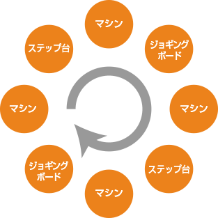 全身を使った有酸素系の運動を行いますが、体力の差によって