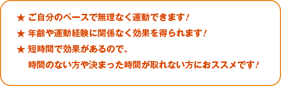 運動強度を変えることができるので、無理なく脂肪燃焼できます。